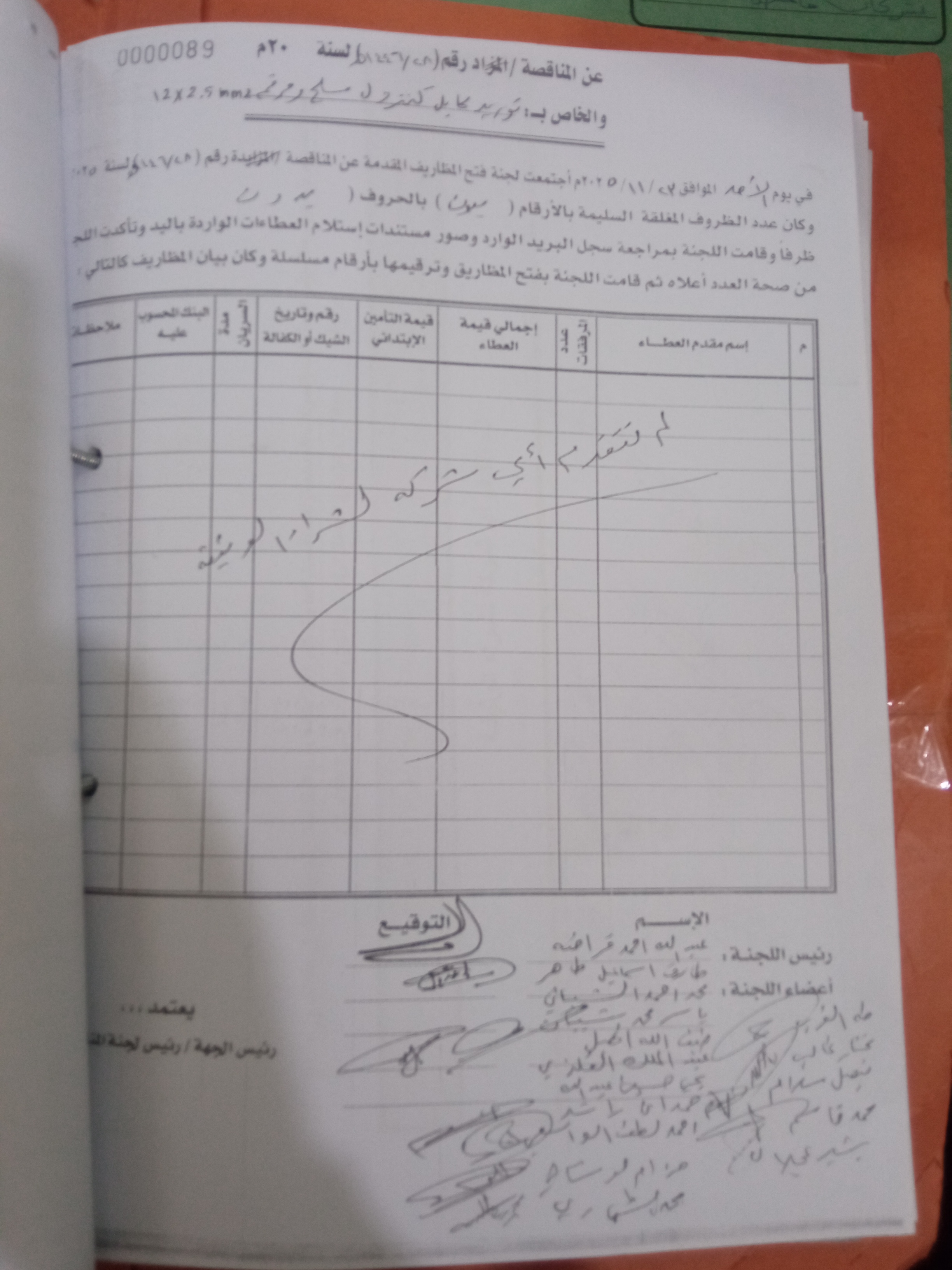 بيانات فتح مظاريف المناقصة