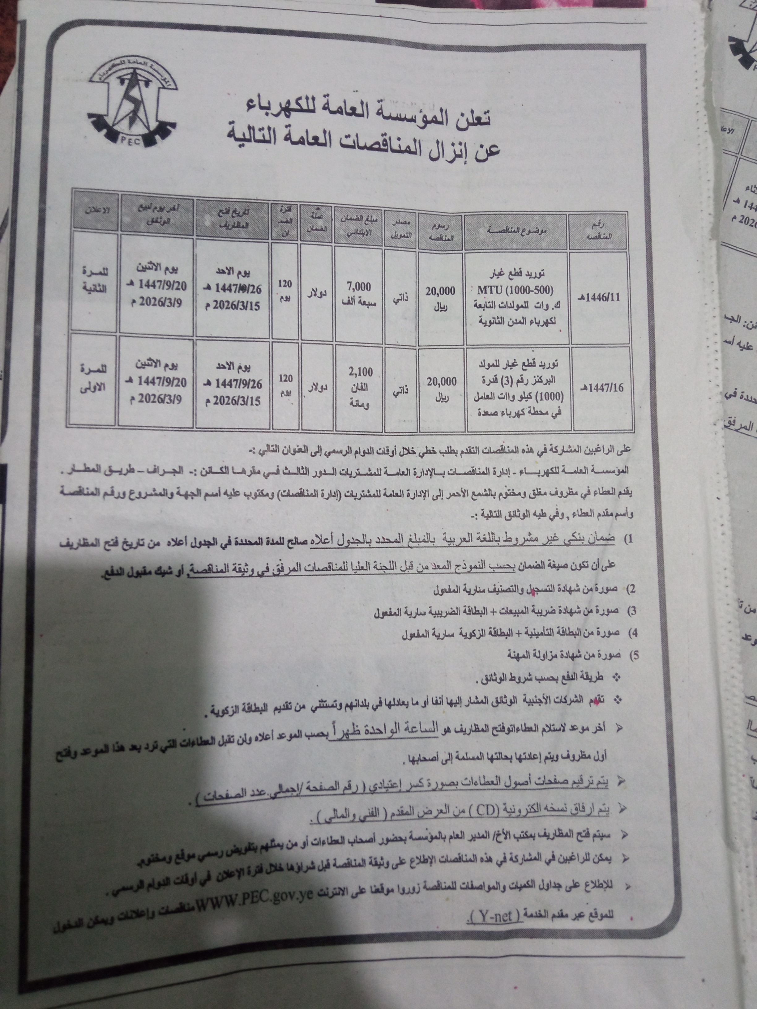 تفاصيل المناقصة |